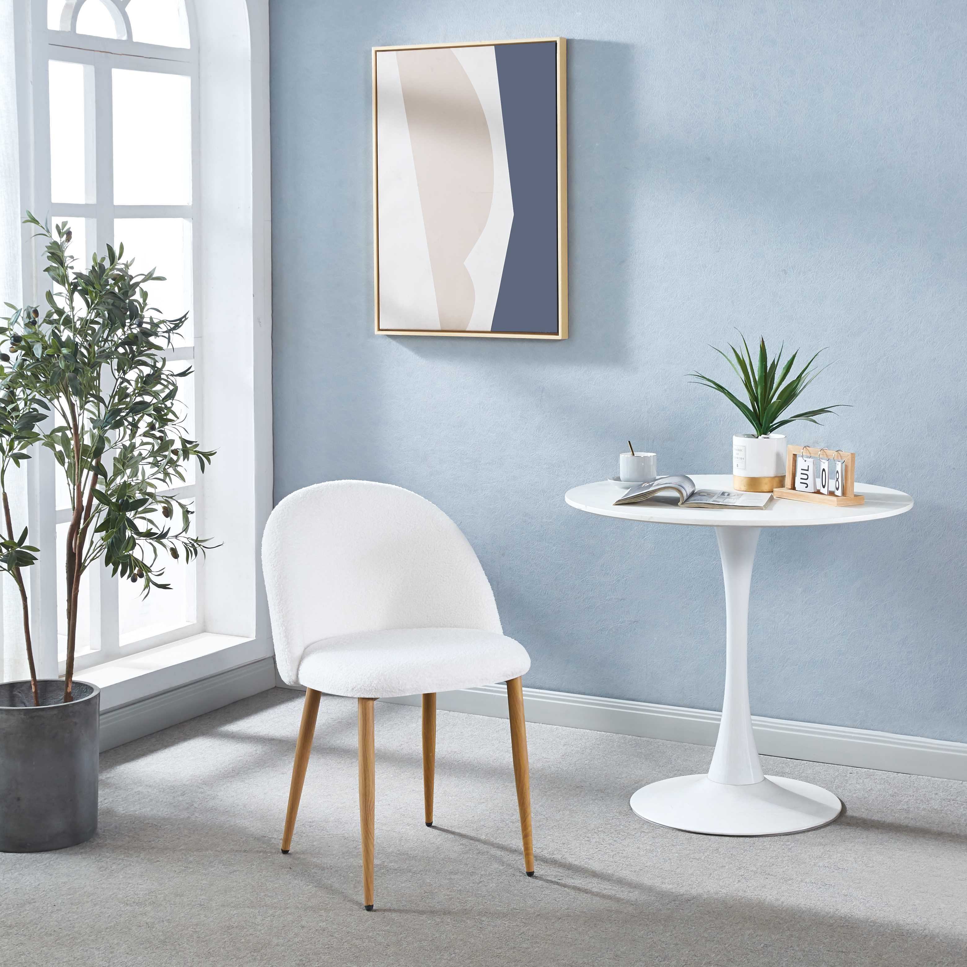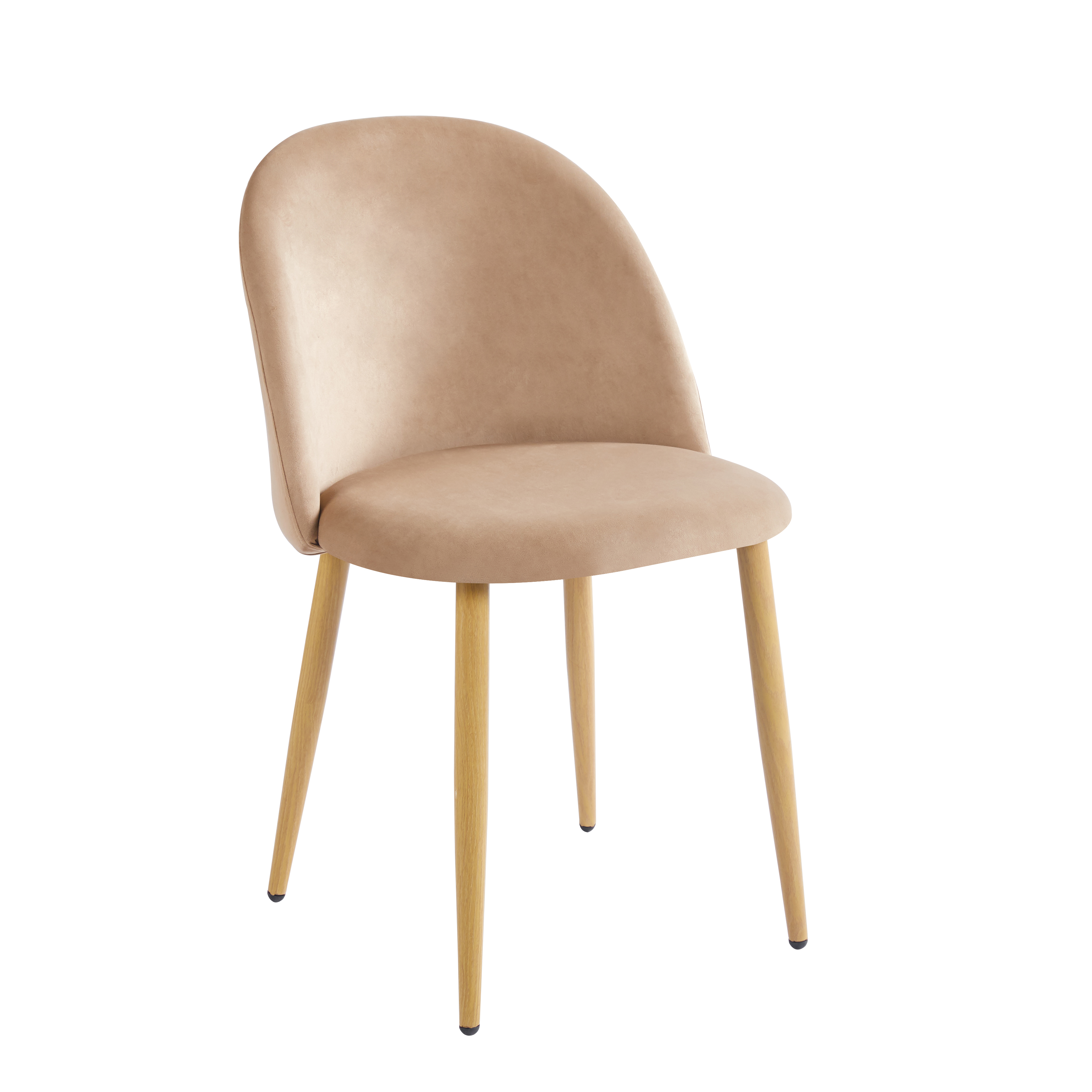 This chair features a minimalist and stylish design with smooth, rounded lines throughout. The curved backrest provides comfortable support. The seat is upholstered in a light beige fabric that is soft and delicate in texture, creating a gentle and elegant visual impression. The four slender metal legs have a slightly tapered design and are coated in light beige, harmonizing with the seat color for a lightweight yet stable overall look.¥ 0.00Buy now