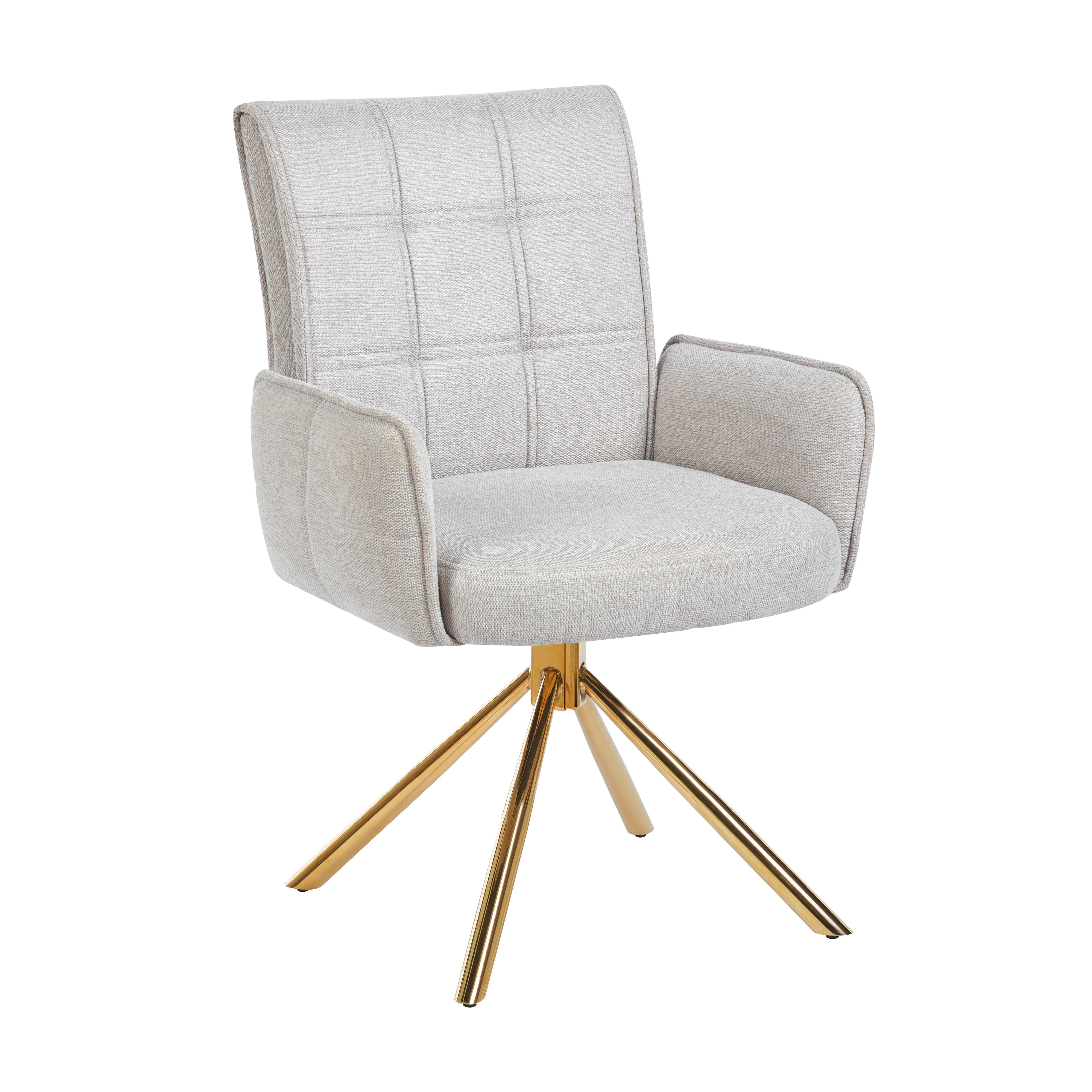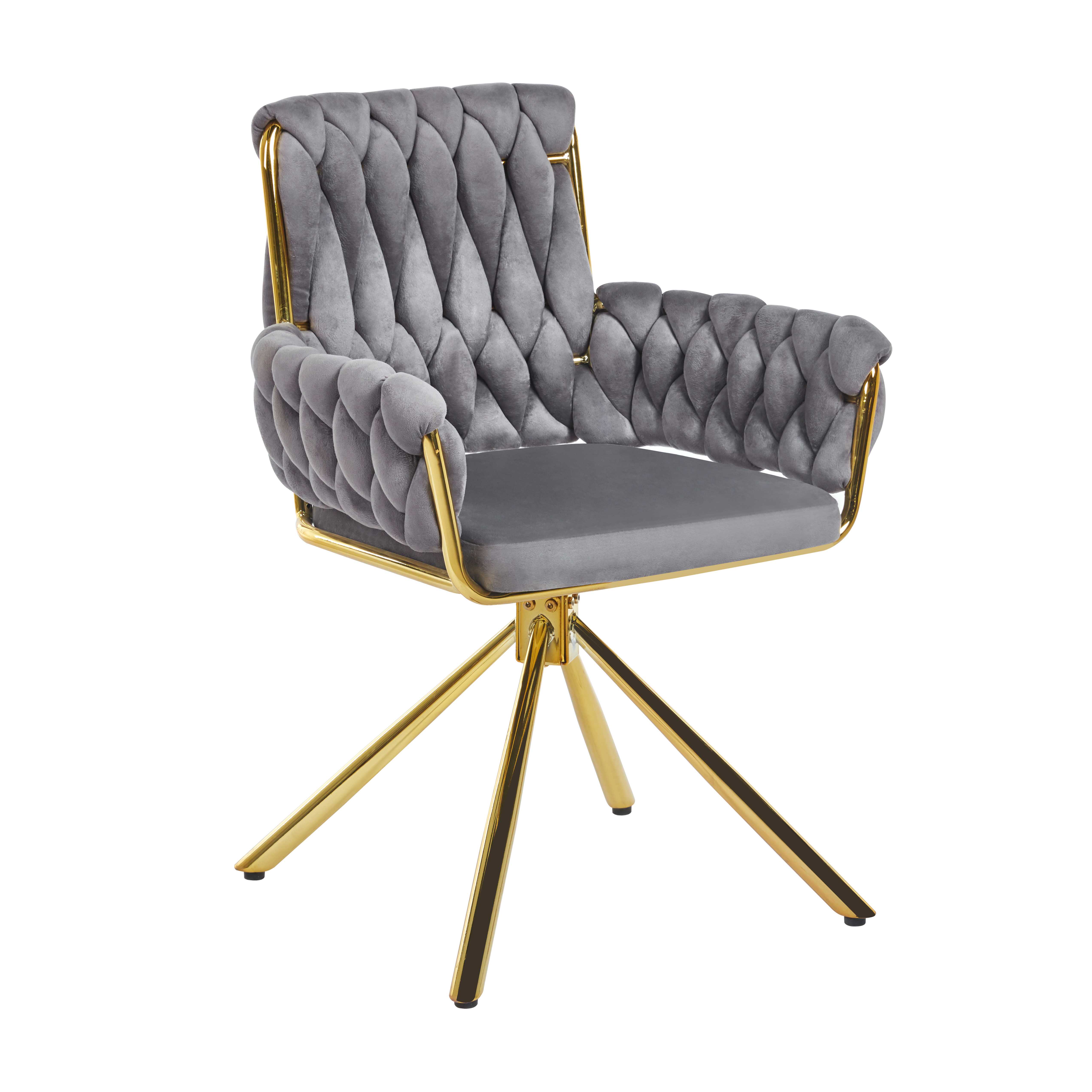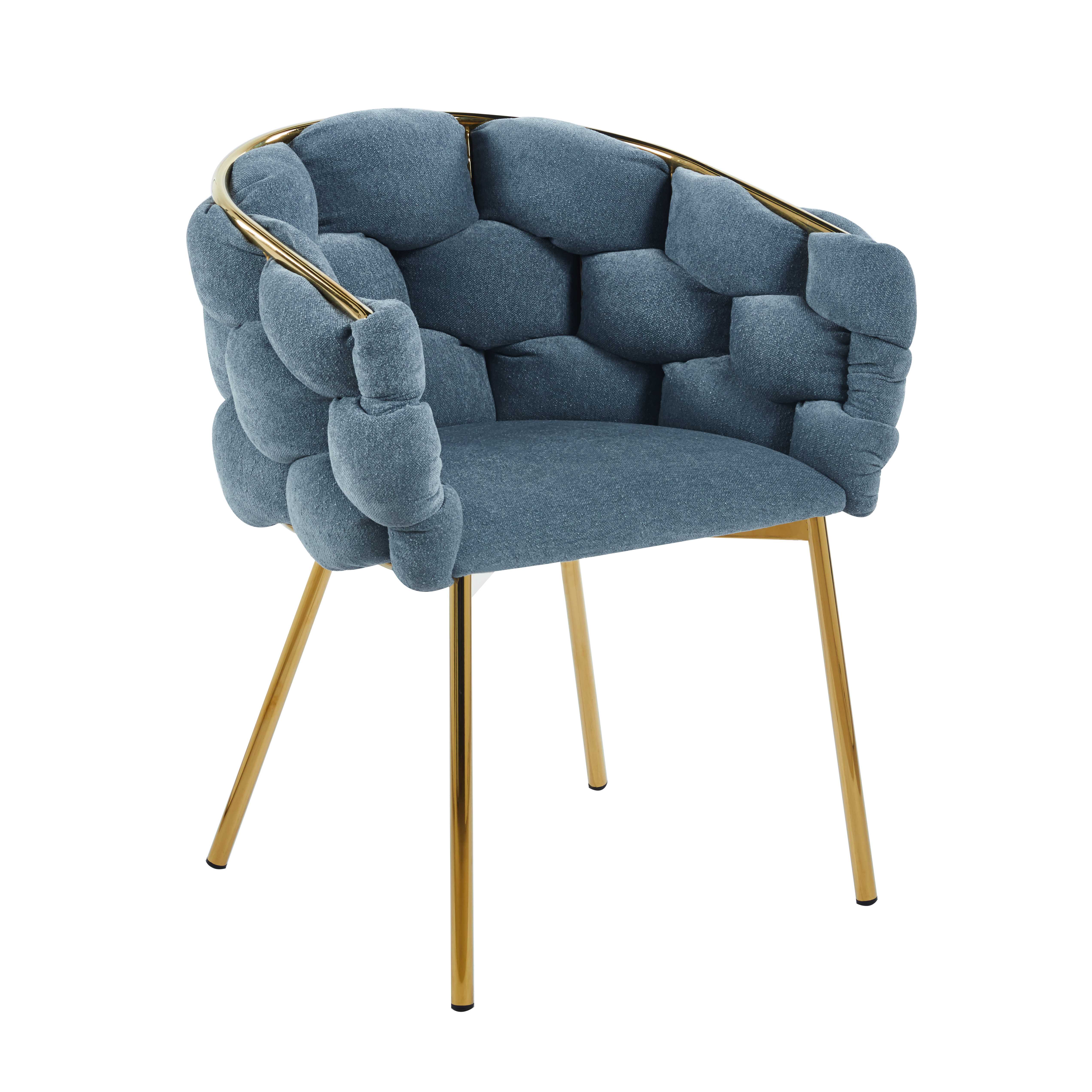 The design is simple and elegant, showing a sense of fashion in modern home or office space. The main body is made of light gray fabric, matched with gold metal bracket, the color is harmonious, showing nobility and fashion. The backrest and seat cushion are integrated with the lattice pattern, adding a visual layering to the chair.¥ 0.00Buy now