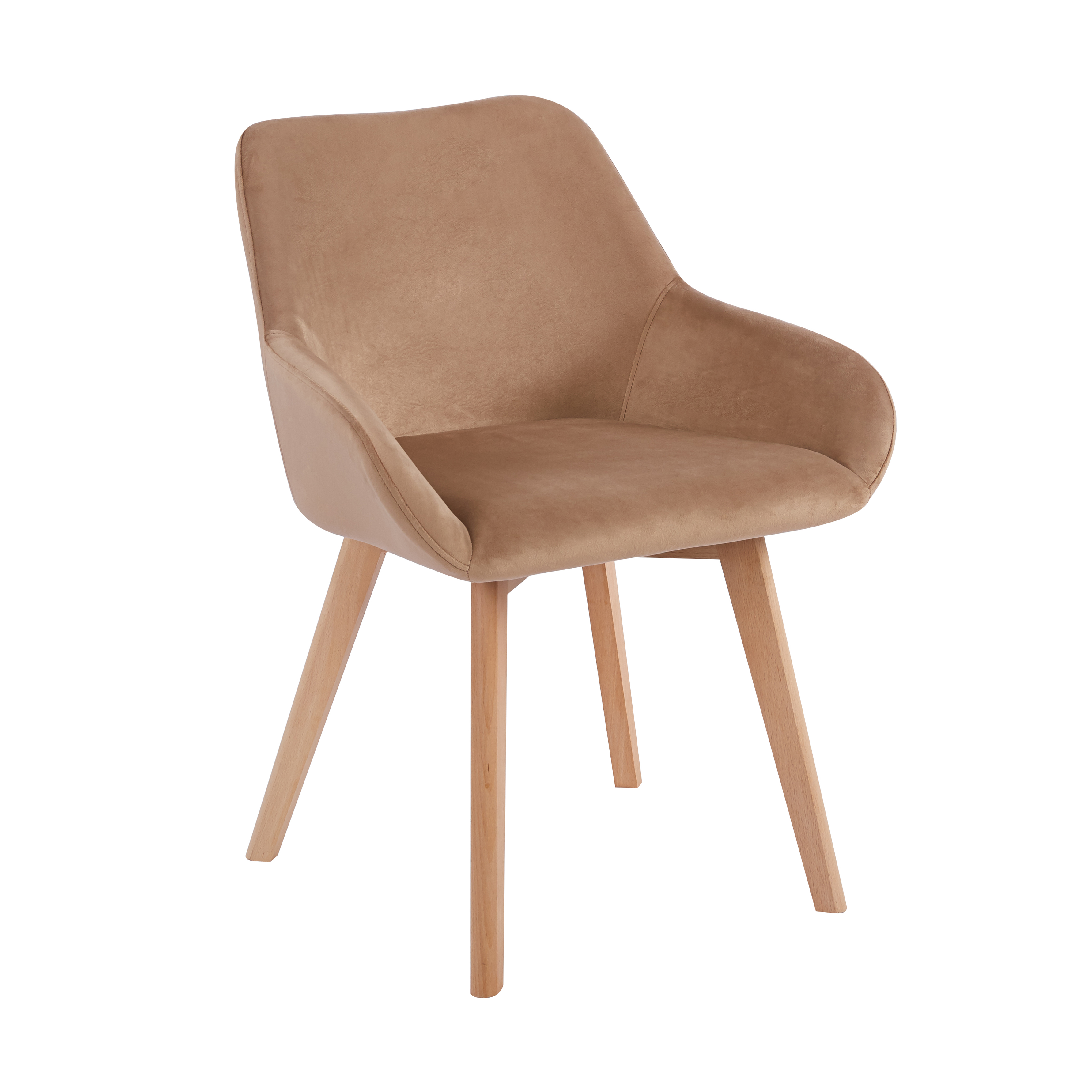 Upholstered in soft, premium velvet with a warm neutral tone, this chair features a contoured backrest and integrated armrests for ergonomic comfort. Supported by sturdy natural solid wood legs, its sleek, modern design elevates any living room, bedroom, or dining space, blending timeless style with everyday functionality.¥ 0.00Buy now